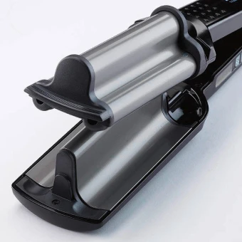 Dank der extrem geformten Heizstäbe und der hohen Temperatur entstehen im Handumdrehen stark definierte Wellen. Die Ionen-Technologie macht das Haar seidig glänzend und geschmeidig. Verhindert die statische Aufladung der Haare.