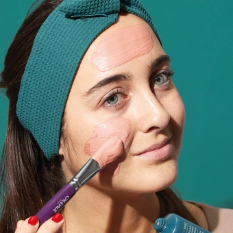 Warten Sie 5 Minuten und sehen Sie im Spiegel, wie Ihre Poren beim Trocknen unter dem Ton hervorkommen.