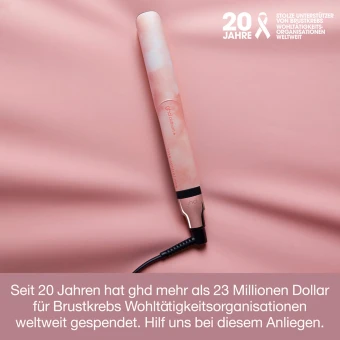 ghd pink collection. In den letzten 20 Jahren hat ghd weltweit mehr als 23 Millionen Dollar für Brustkrebsorganisationen gesammelt und engagiert sich weiterhin dafür, Jahr für Jahr weitere Spenden zu generieren. Das Abtasten der Brüste ist für alle Frauen wichtig, denn Früherkennung rettet Leben. Deshalb wurde der exklusive ghd platinum+ smart Styler so entwickelt, dass er mit ‘Take Control Now’ eine Erinnerung an das regelmäßige Abtasten enthält. Die Limited Edition enthält den ghd pink platinum+ Styer in Peach Pink mit Cloud Pattern zusammen mit einem farblich passenden Hitzeschutz-Etui.*