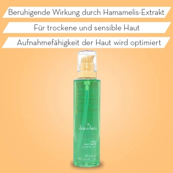 Anwendung: Nach der Reinigung lotion aux herbes auf zwei trockene Wattepads geben und mit leichtem Druck Gesicht und Hals abreiben.