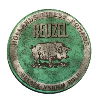 Die Reuzel Pomade in der grünen Dose ist ein vielseitiges, auf Wachs und Öl basierendes Stylingprodukt. Sie hat einen natürlichen Glanz bei mittlerem Halt. Reuzel Pomade Green hinterlässt keine Rückstände und besteht unter anderem aus Bienenwachs, Vaseline, Teebaumöl und Emuöl.